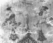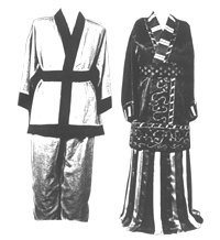 Bilder oben: Links ein altes Gemälde in einer Gruft aus der Zeit der Ko Ku Ryo Dynastie welches Soo Bahk Techniken zeigt (Ende 4. Jahrhundert). Rechts: Traditionelle Bekleidung links eines Kämpfers und rechts typische Frauenbekleidung ebenfalls zur Zeit der Ko Ku Ryo Dynastie in Korea.